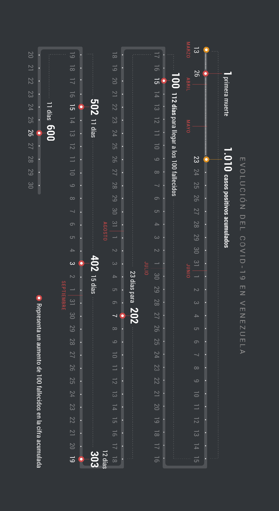 El día con mayor número de positivos y fallecidos del año, fue el jueves, 13 de agosto, día en el que se registraron 1.281 nuevos casos y 12 decesos, anunciados vía Twitter por la vicepresidenta Delcy Rodríguez, quien a su vez mencionó que entre los fallecidos de ese día estaba el jefe de gobierno del Distrito Capital, Darío Vivas, de 70 años de edad.