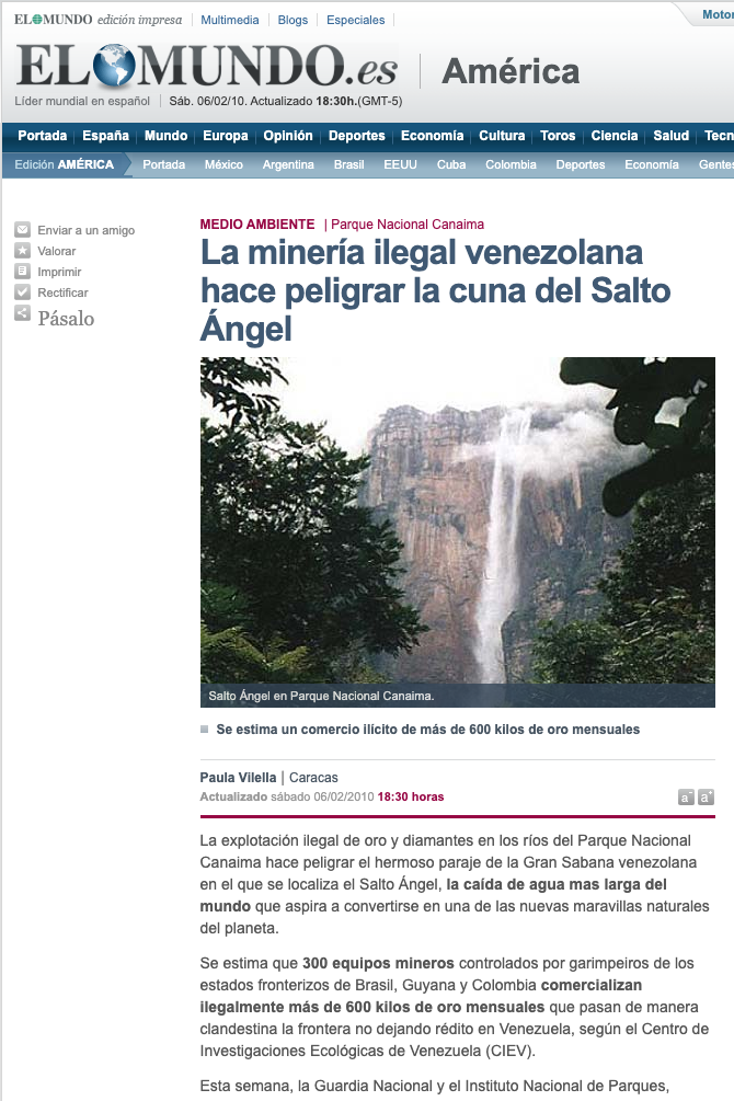 November 24: ABC España reports that mineral extraction is putting Canaima National Park in danger.