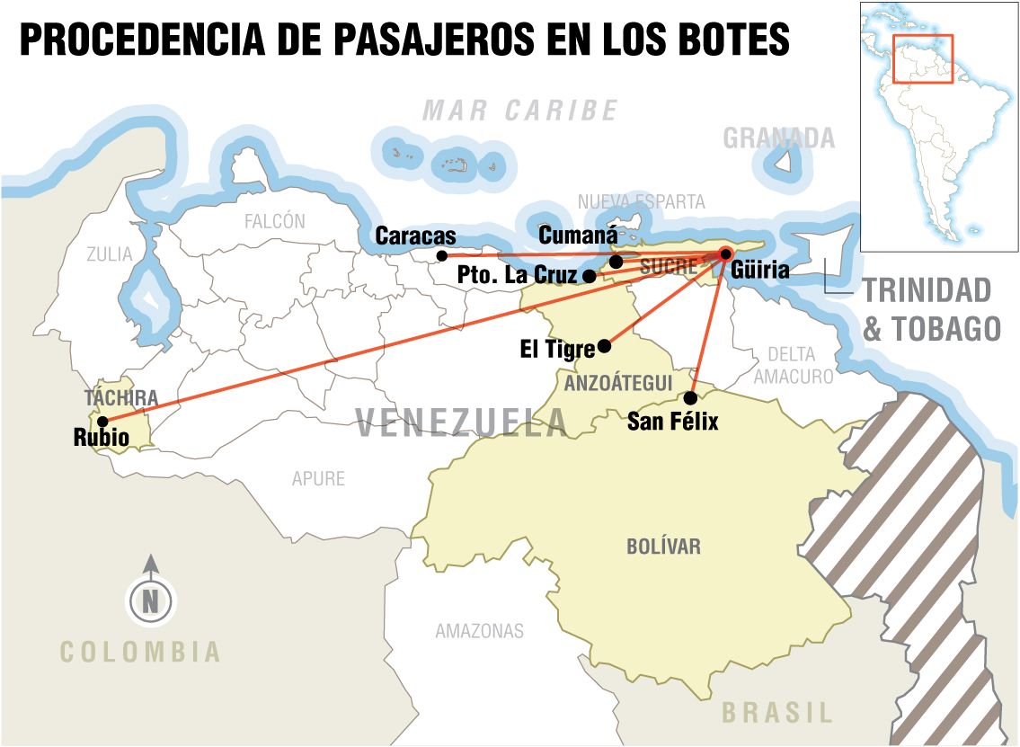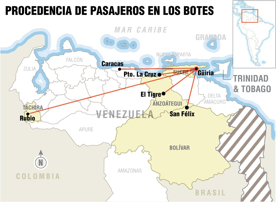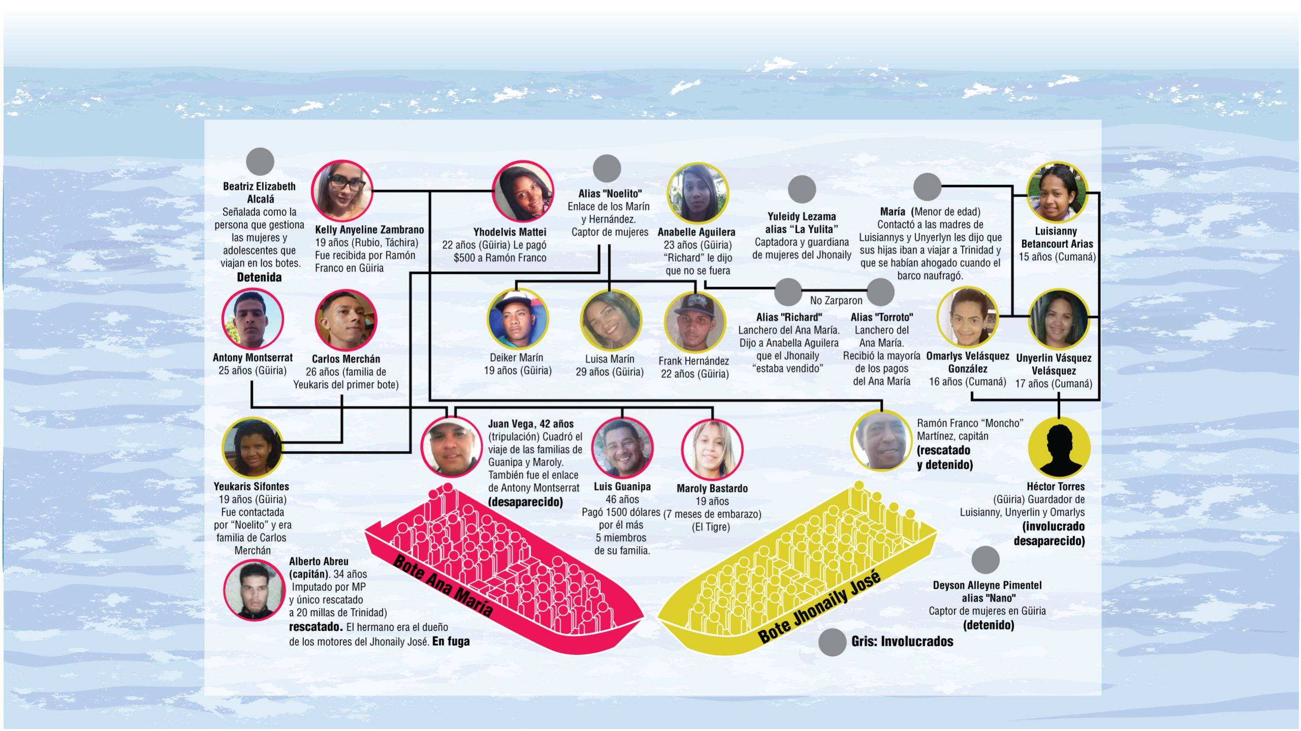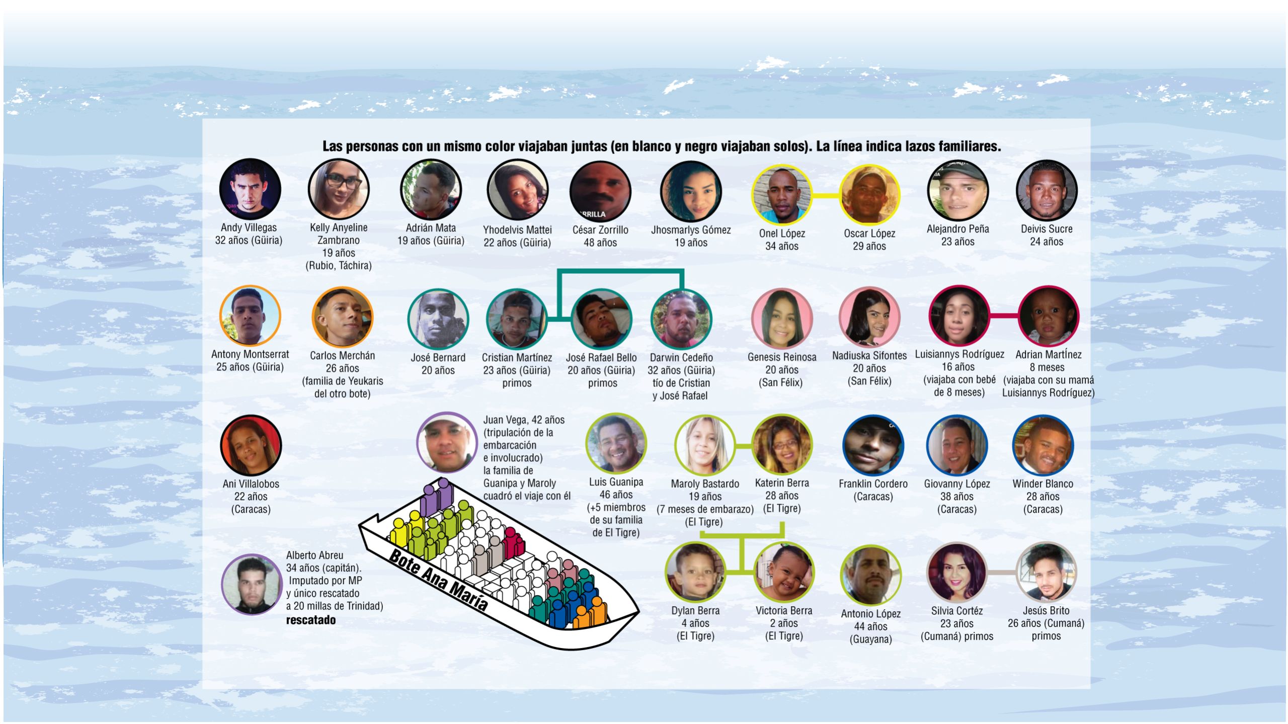 There's an easy trail to follow from the alias "Noelito". He was the contact for Luisa Marín (29) and Deiker Marín (19), aunt and nephew, to go to Trinidad where Luis Montaño, a relative who two months earlier used the same route to leave Venezuela after coordinating the trip with the same boatman, was waiting for them.