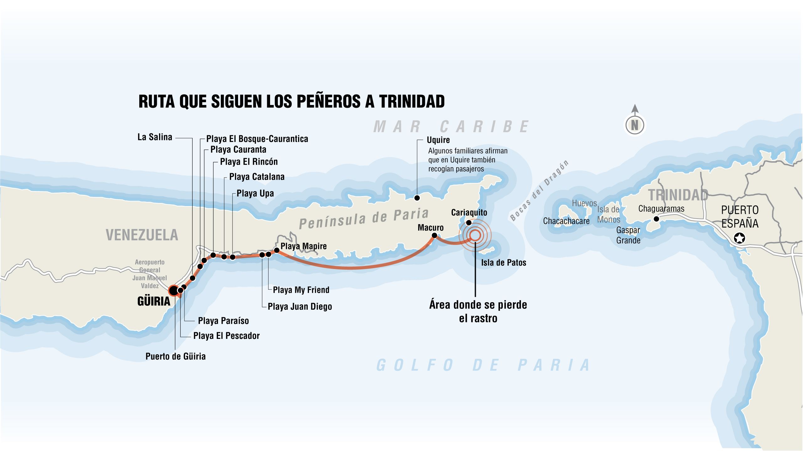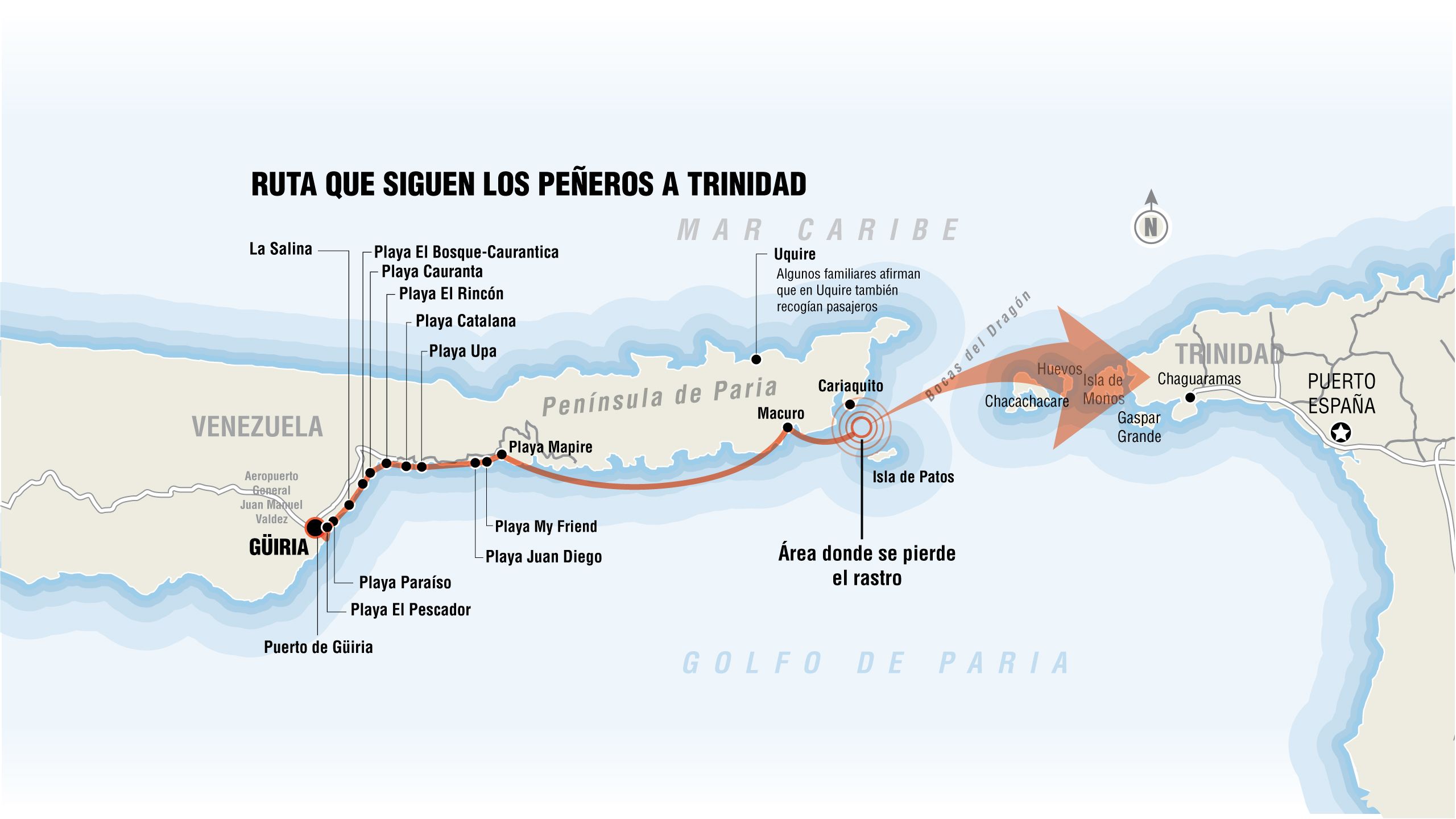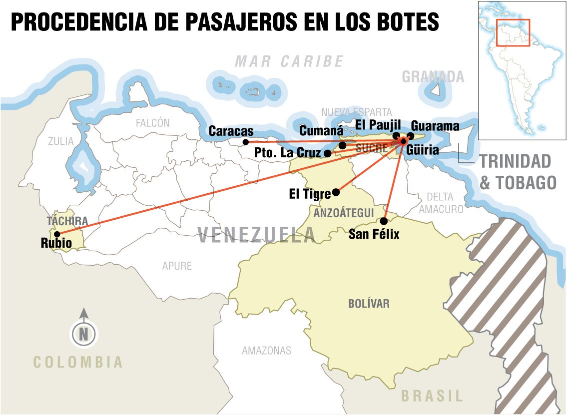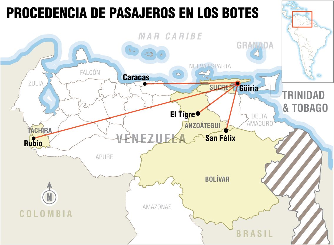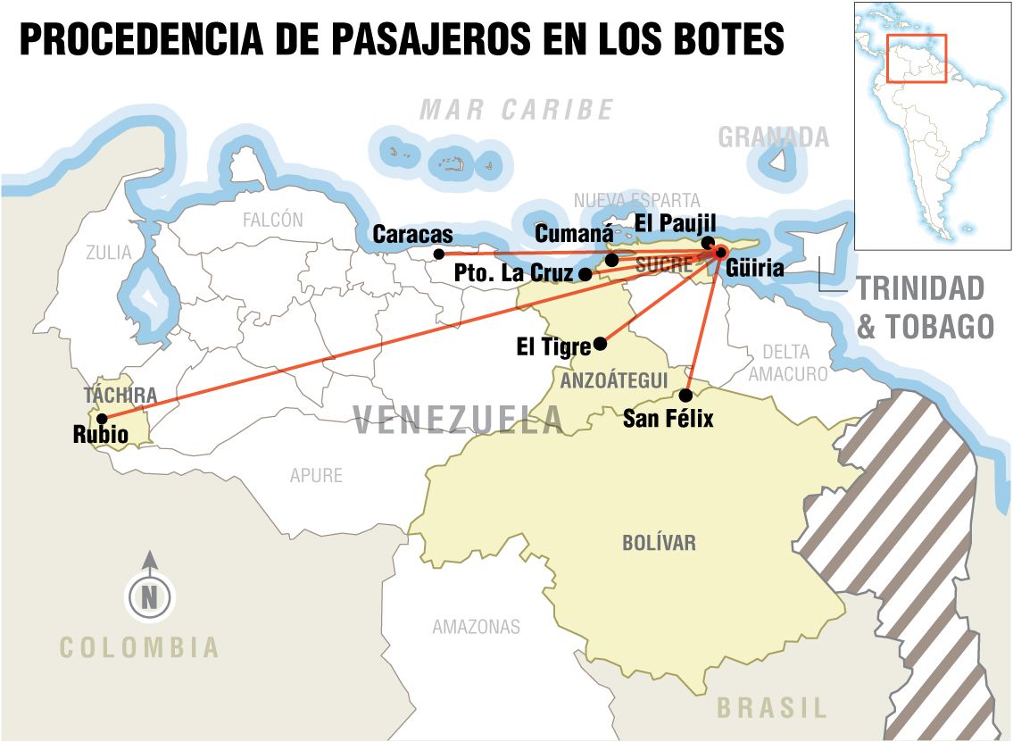 There's an easy trail to follow from the alias "Noelito". He was the contact for Luisa Marín (29) and Deiker Marín (19), aunt and nephew, to go to Trinidad where Luis Montaño, a relative who two months earlier used the same route to leave Venezuela after coordinating the trip with the same boatman, was waiting for them.