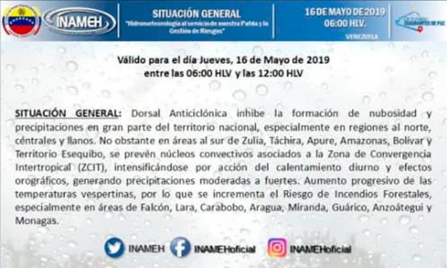 ONSA weather report on the disappearance of Jhonaily José (onsa.org.ve)