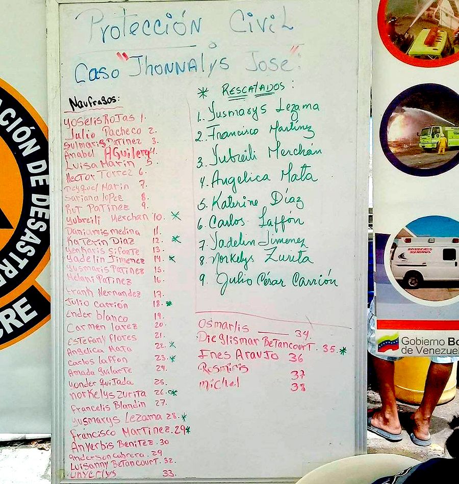 Jhonaily José's passenger list exhibited in the port of Güiria (Twitter @qtalyesi)