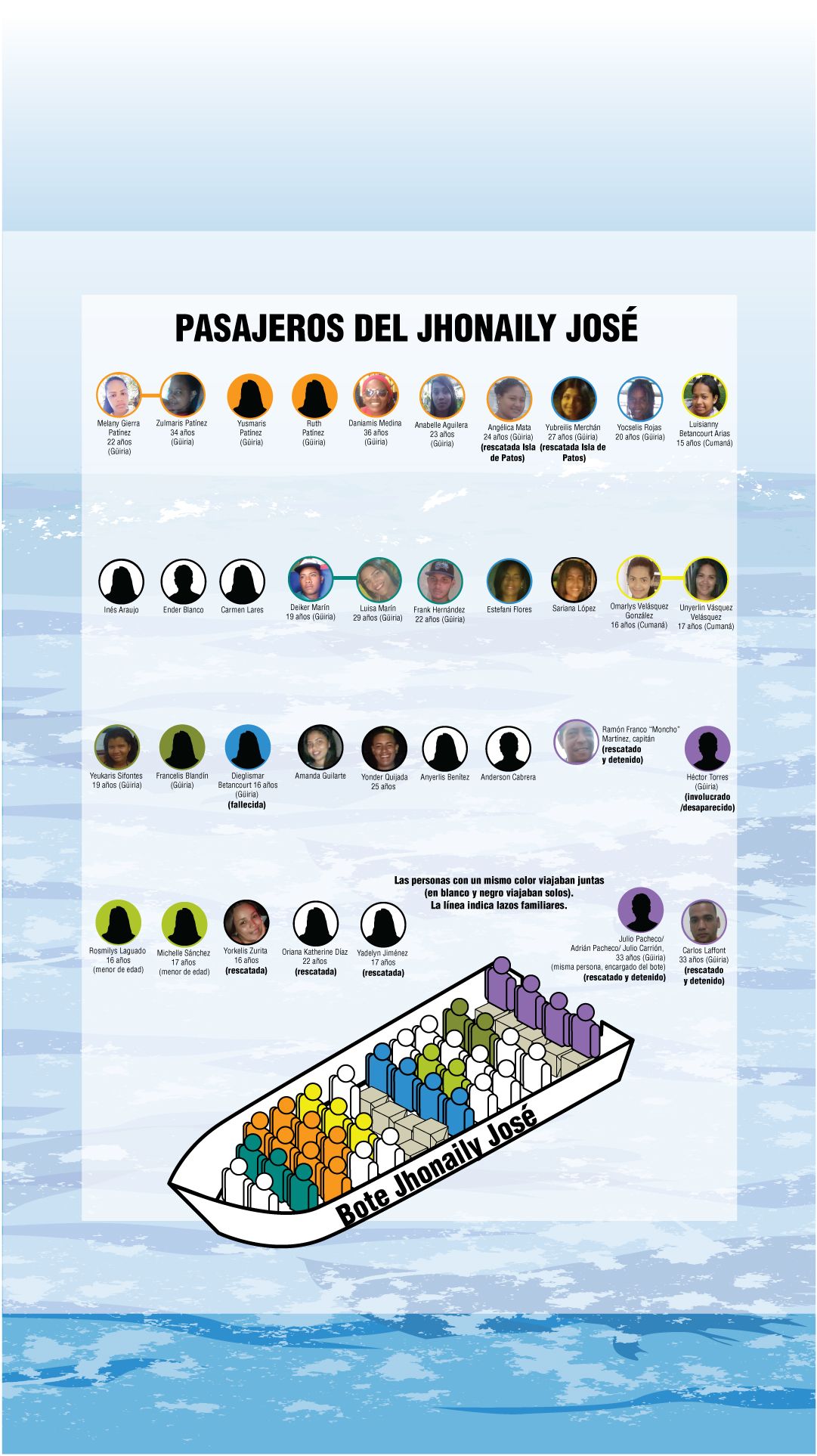 After a request for information made to both institutions in the port of Güiria, the officials said they were not authorized to respond if there was an official document listing the people on board that night on the boat Jhonaily José, registration number ARSI-CA0067.