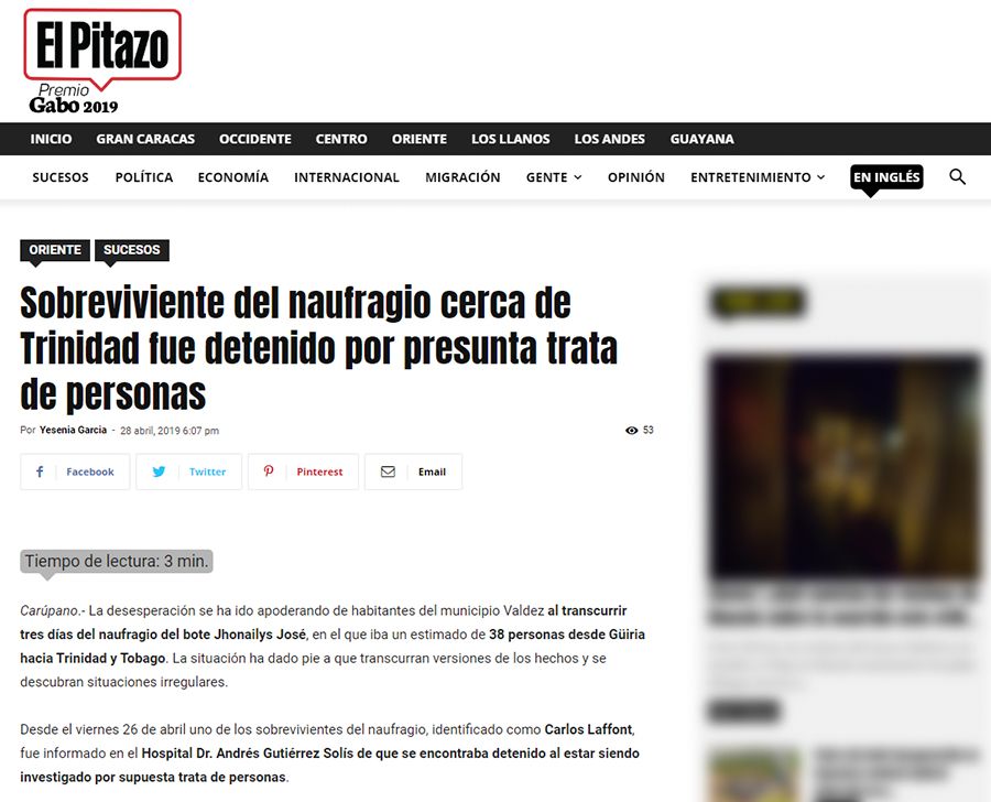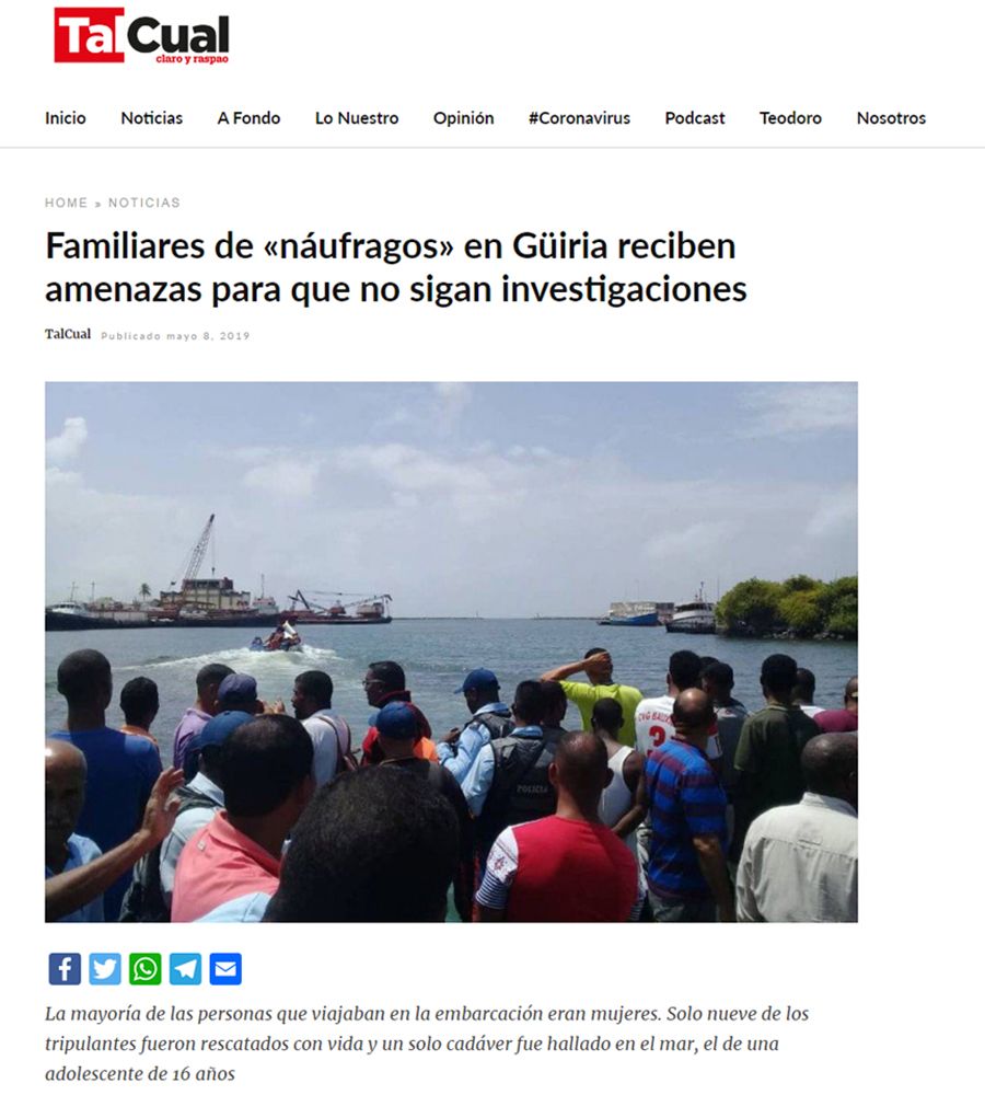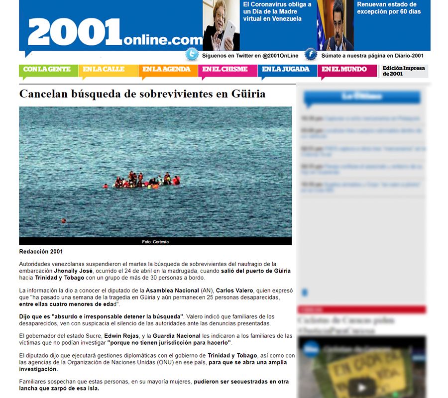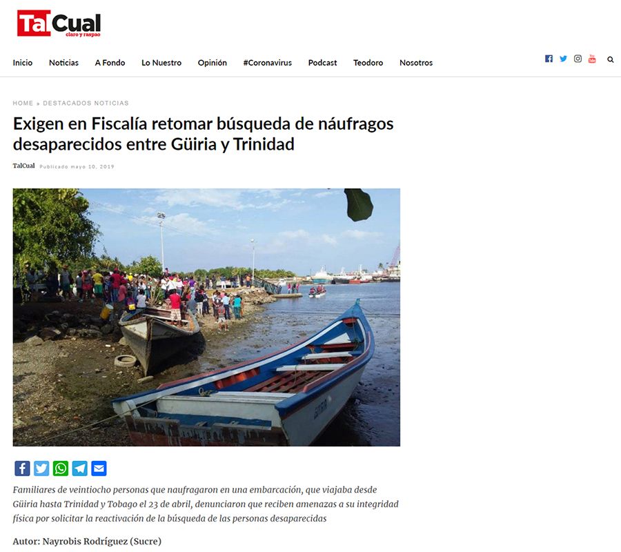 The journalistic work was published when the case of the missing persons from the boats that left from Güiria, in the state of Sucre, Venezuela, was only days old.