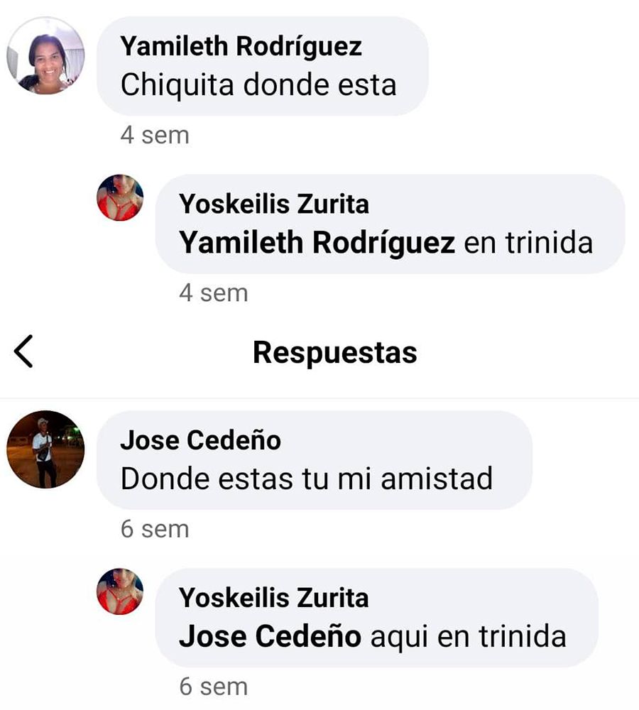 Neria Marin, Luisa's sister and Deiker's aunt, says that the departure took place at the last minute because Fran Hernandez, the friend with whom they were travelling, told them on 23 April 2019 that he would not be travelling because there was no one to receive him that night in Trinidad.