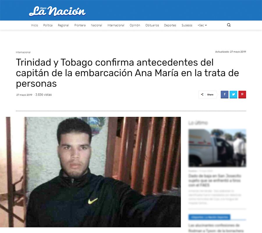 #25May #ATENCION Ministro de Seguridad Nacional de Trinidad y Tobago, Stuart Young, confirma que Alberto Abreu, supuesto capitán de la embarcación Ana María, tiene antecedentes penales por trata de persona #CasoGuiria