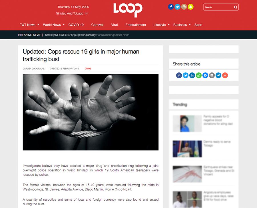 Although the Trinidadian authorities at the time pointed out that there was sufficient evidence of a trafficking and sexual slavery scheme and that minors were involved, several of the young women were arrested for the crime of prostitution, as recorded by several media outlets on the island that reported the event.