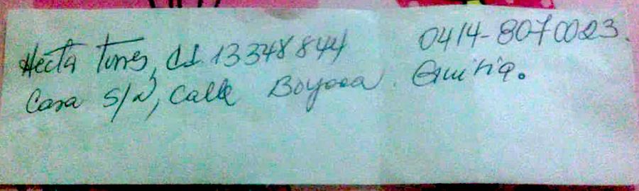 Very early on Friday morning, Ana returned to Conas. For the second time in three days, the tracing of this call dictated that it was also made from Guiria. But the uniforms washed their hands: "Here is the address and name of the owner of the phone, ma'am. Go and look for your daughter," a commander named Marquez handed him the paper on which he scribbled a name: Hector Torres.