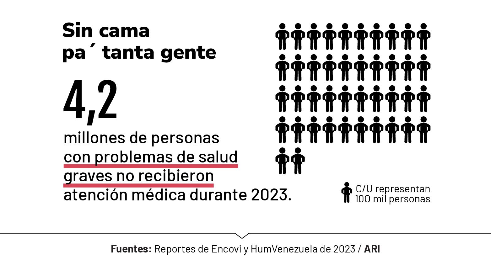 “La Red por los Derechos Humanos de los Niños, Niñas y Adolescentes (Redhnna) denunció en 2023 el fallecimiento de 116 niños/as por la falta de insumos y la ausencia del personal médico especializado en los hospitales públicos, advirtiendo que ´dicho número es apenas un aproximado de la situación real del país, debido a la falta de información oficial”, alerta Provea en el informe Situación de los derechos humanos en Venezuela.