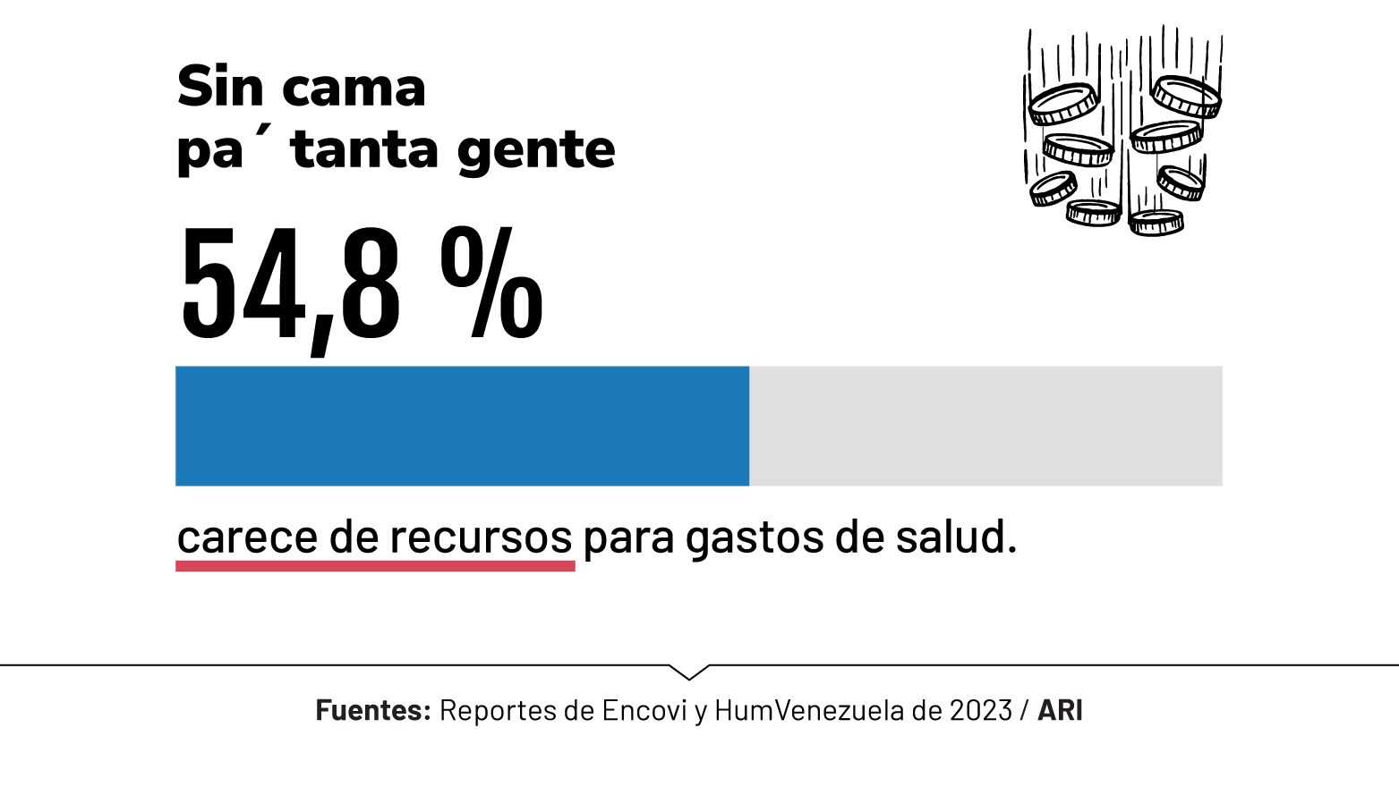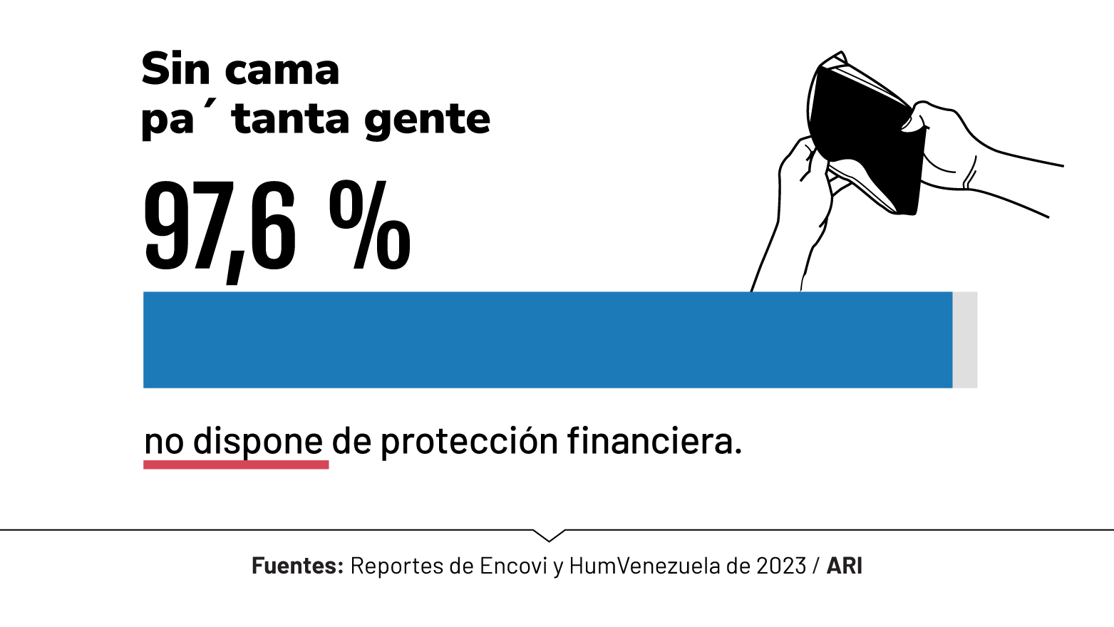Durante 2023 el gasto en salud per cápita fue de US$ 25,01 en Venezuela. En otros países de América Latina este mismo indicador se situó en US$ 2.699 en Chile; US$ 1.573 en Costa Rica y US$ 760 en Perú.
