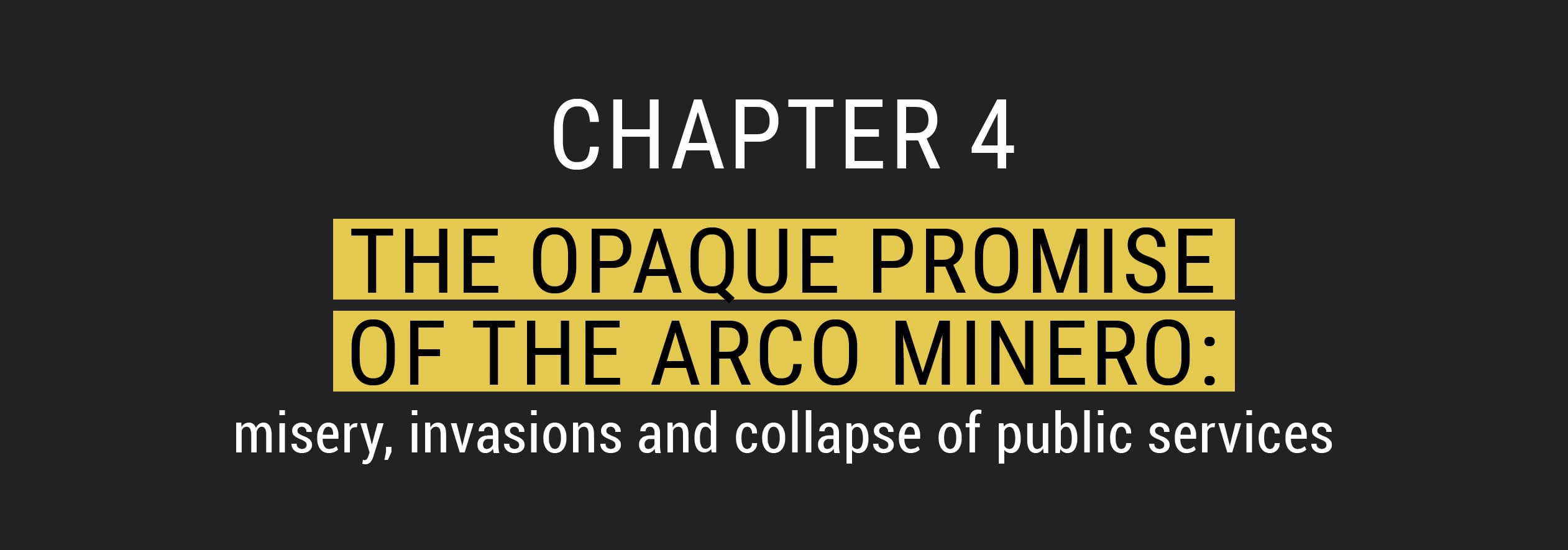 In the official maps of the Arco Minero del Orinoco, there is no identification of indigenous communities, hamlets or villages. The large blocks in degraded green only show minerals to be exploited: gold, quartz and granite, in the case of Bloque 4 Josefa Camejo where the southern section is located, integrated by the municipalities of Roscio, El Callao and Sifontes.