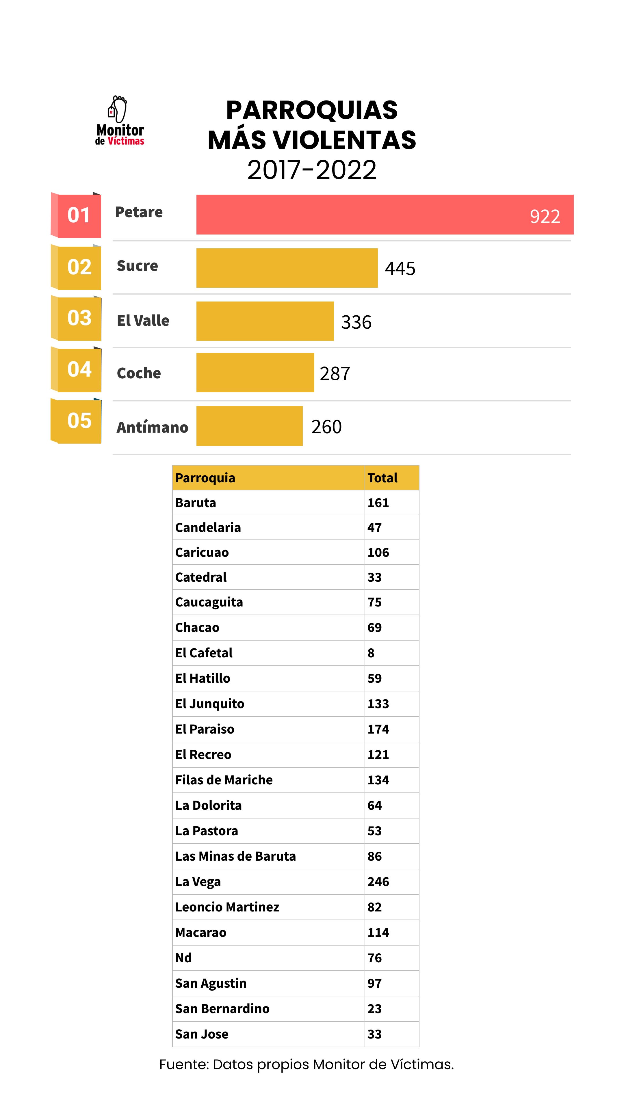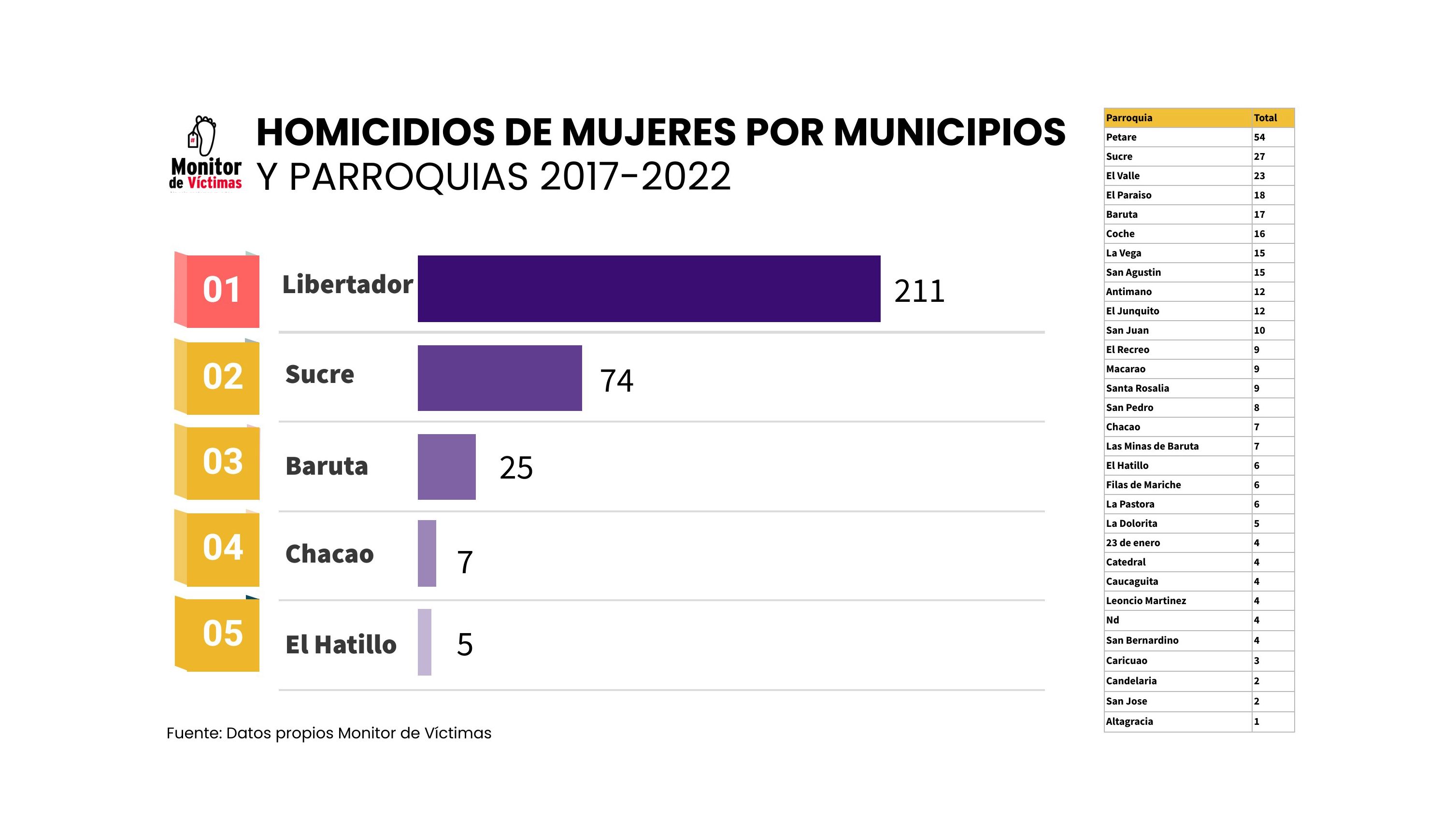 Las parroquias en donde se localizaron la mayor cantidad de muertes de este tipo fueron: Petare, Sucre, La Vega, El Valle y El Paraíso.