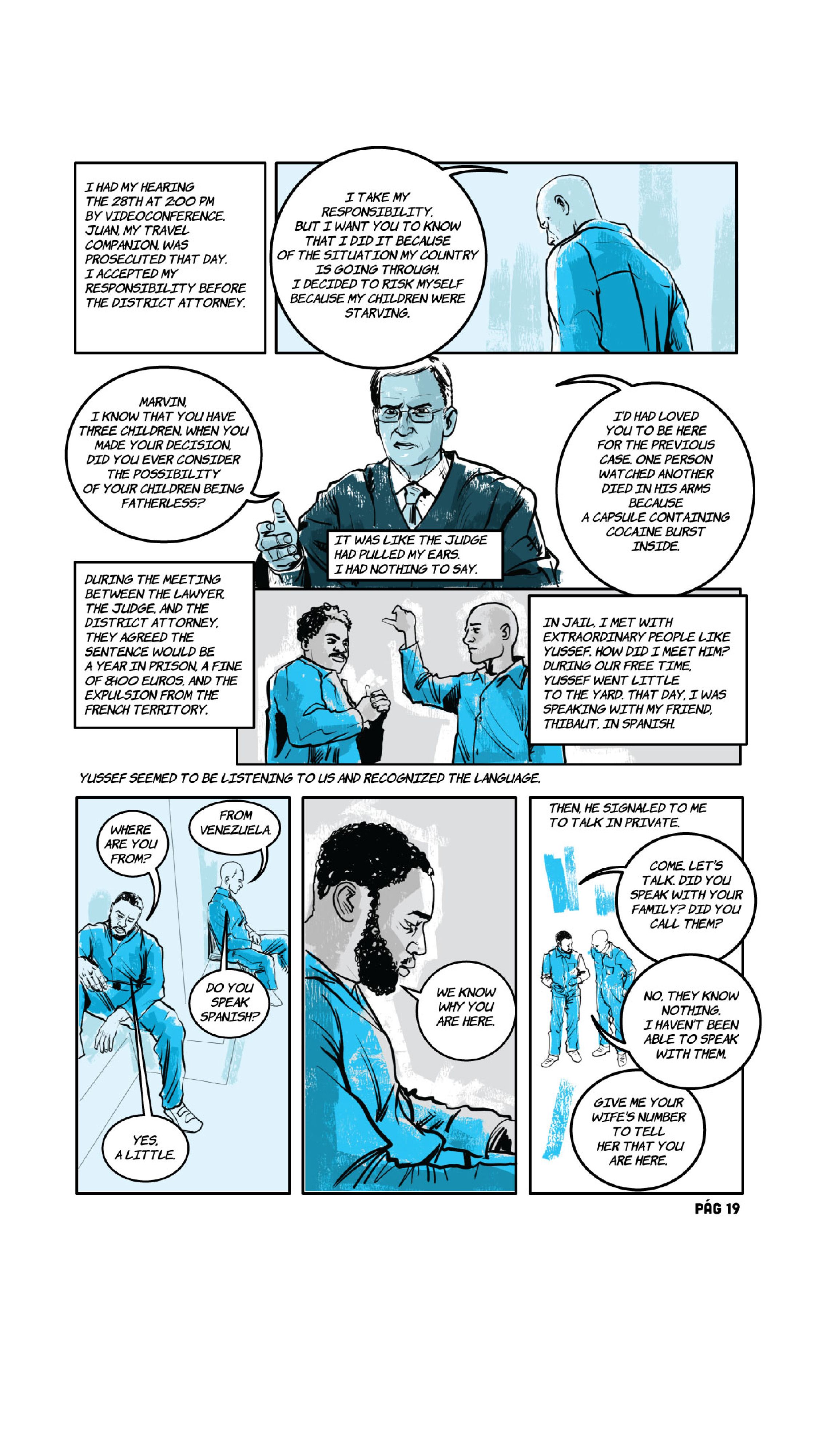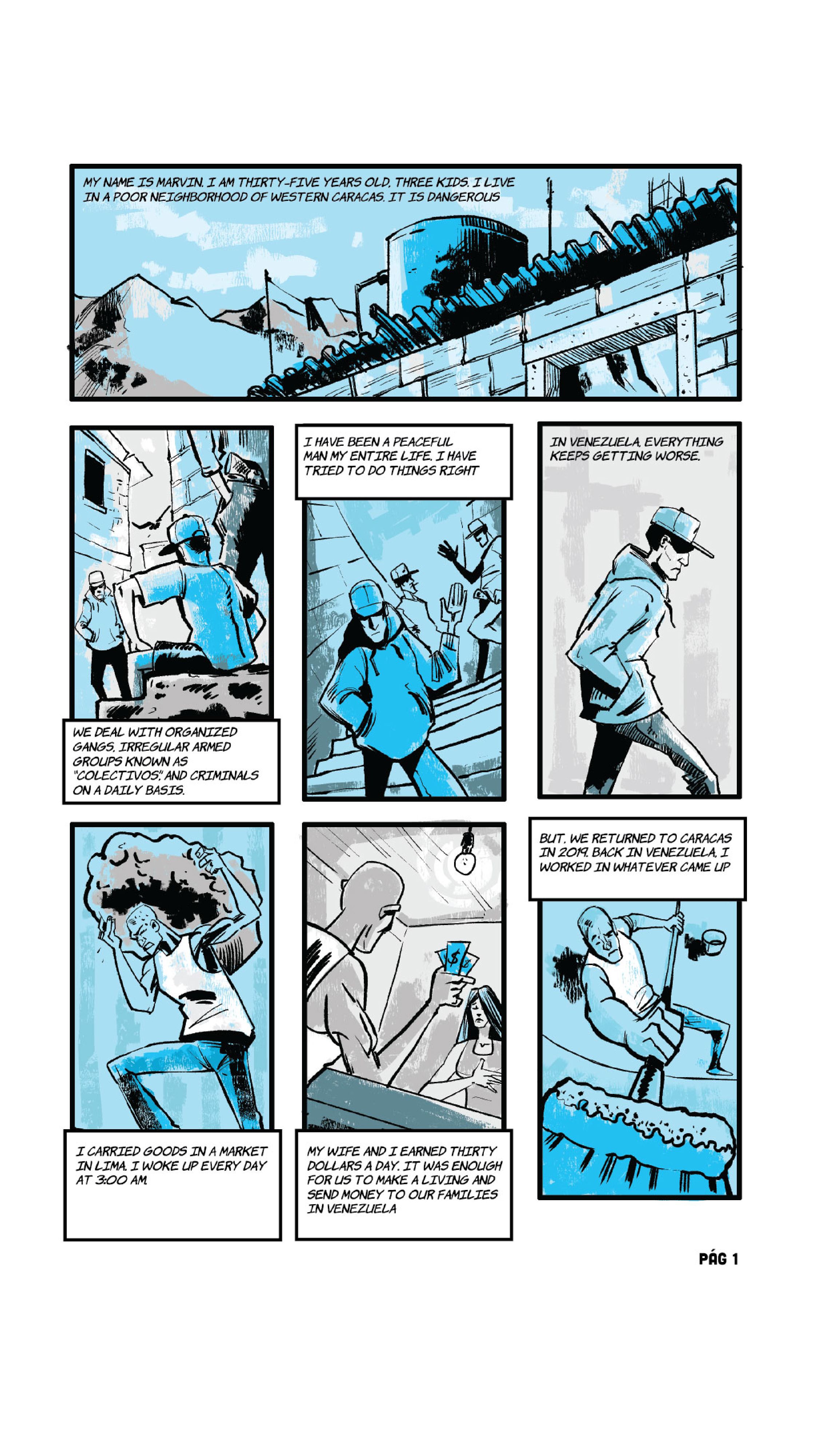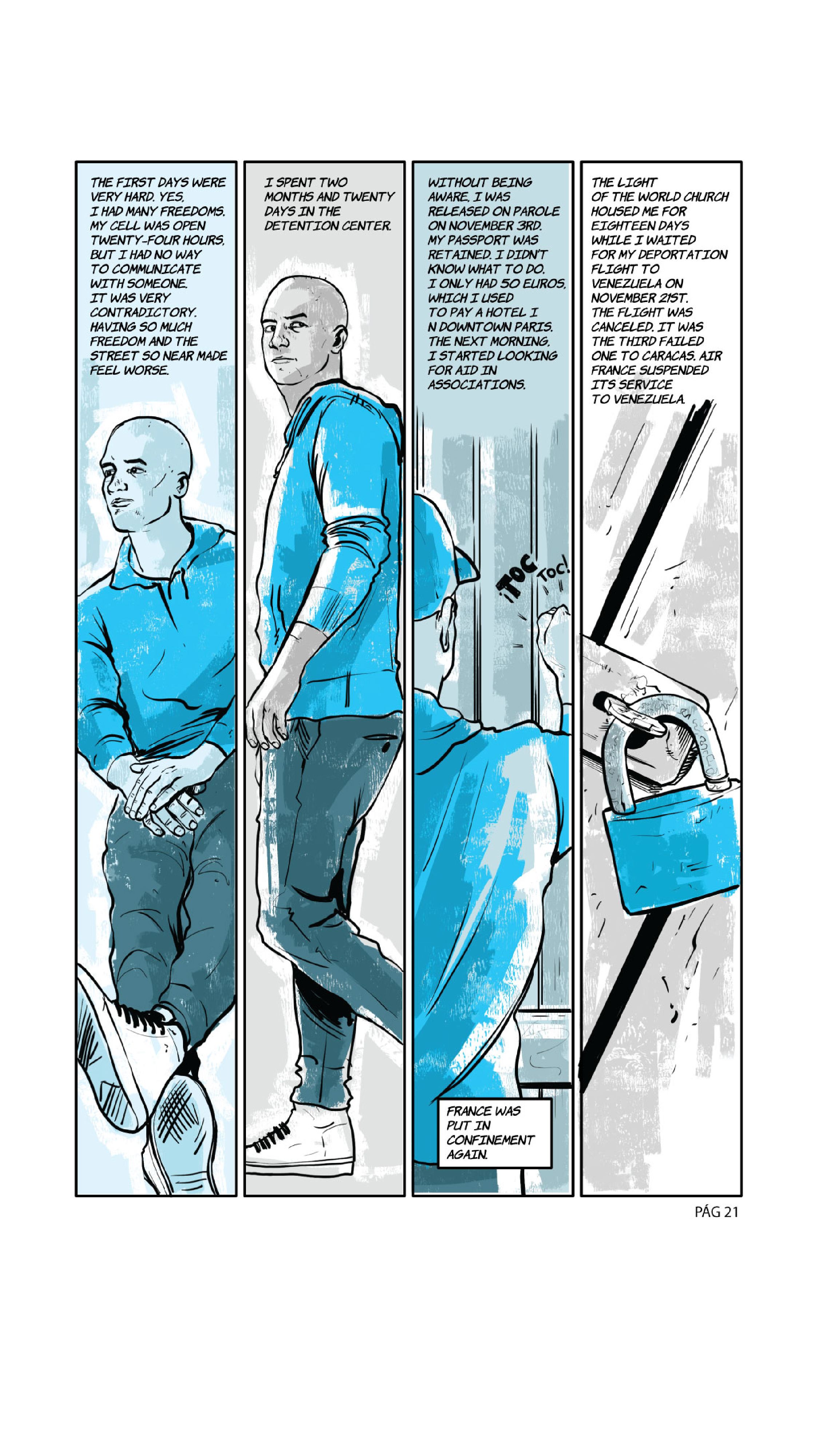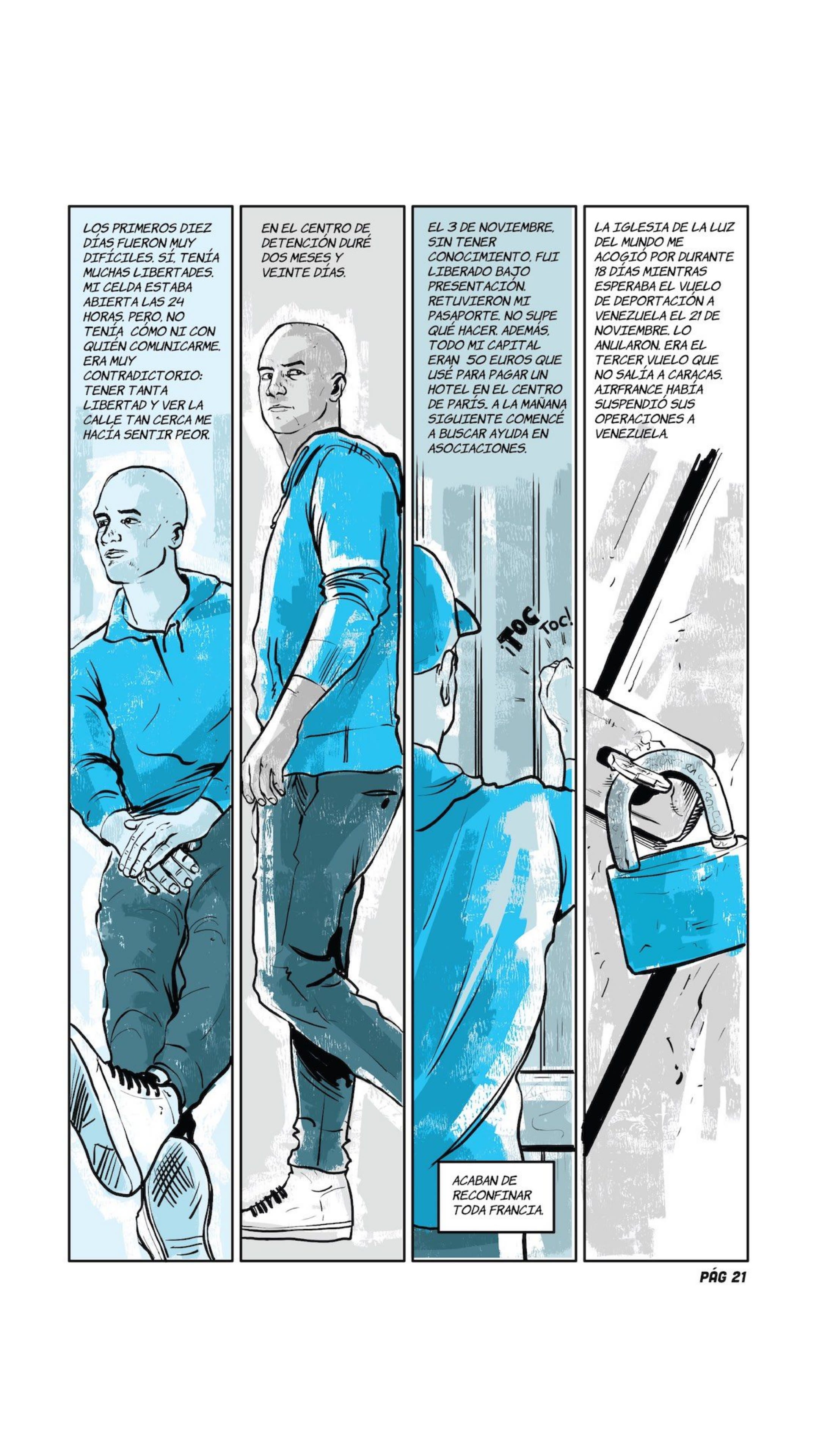 “Food, for food I am here." The phrase is from Marvin*, the lead of the following comic, a Venezuelan who in the midst of the COVID-19 pandemic wandered the streets of Paris alone, without money, without a place to sleep and without a job. It was August 2020 and he had just been released from a prison in the French capital, where he ended up earlier that year after being captured with more than a hundred finger cots of cocaine.