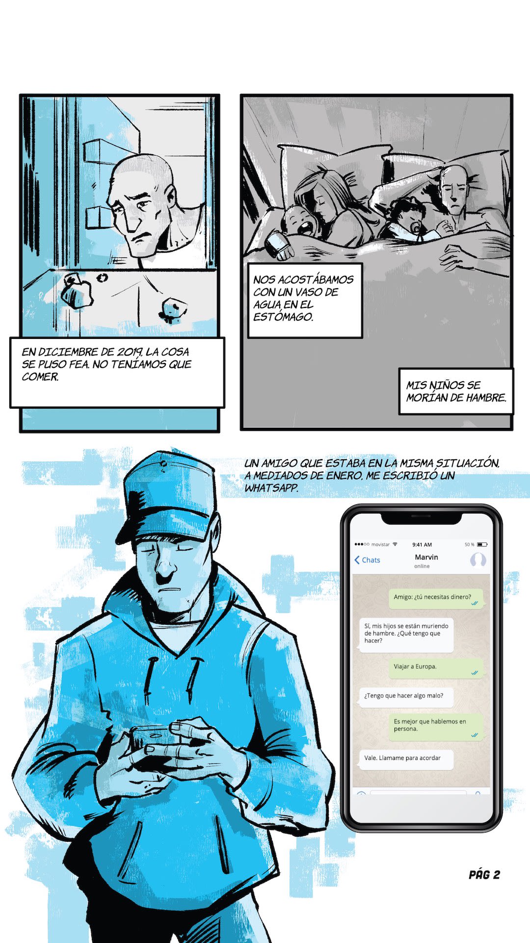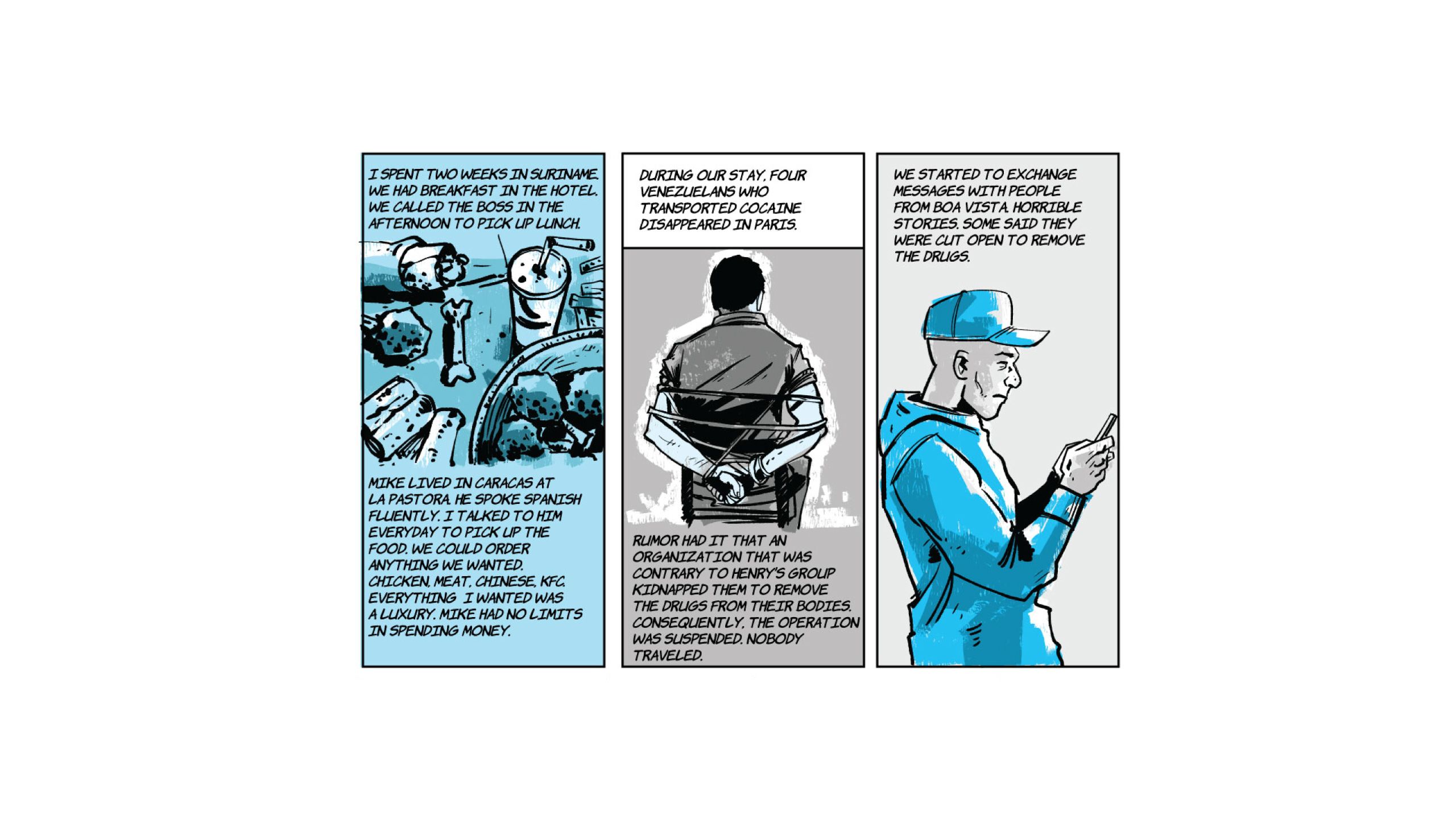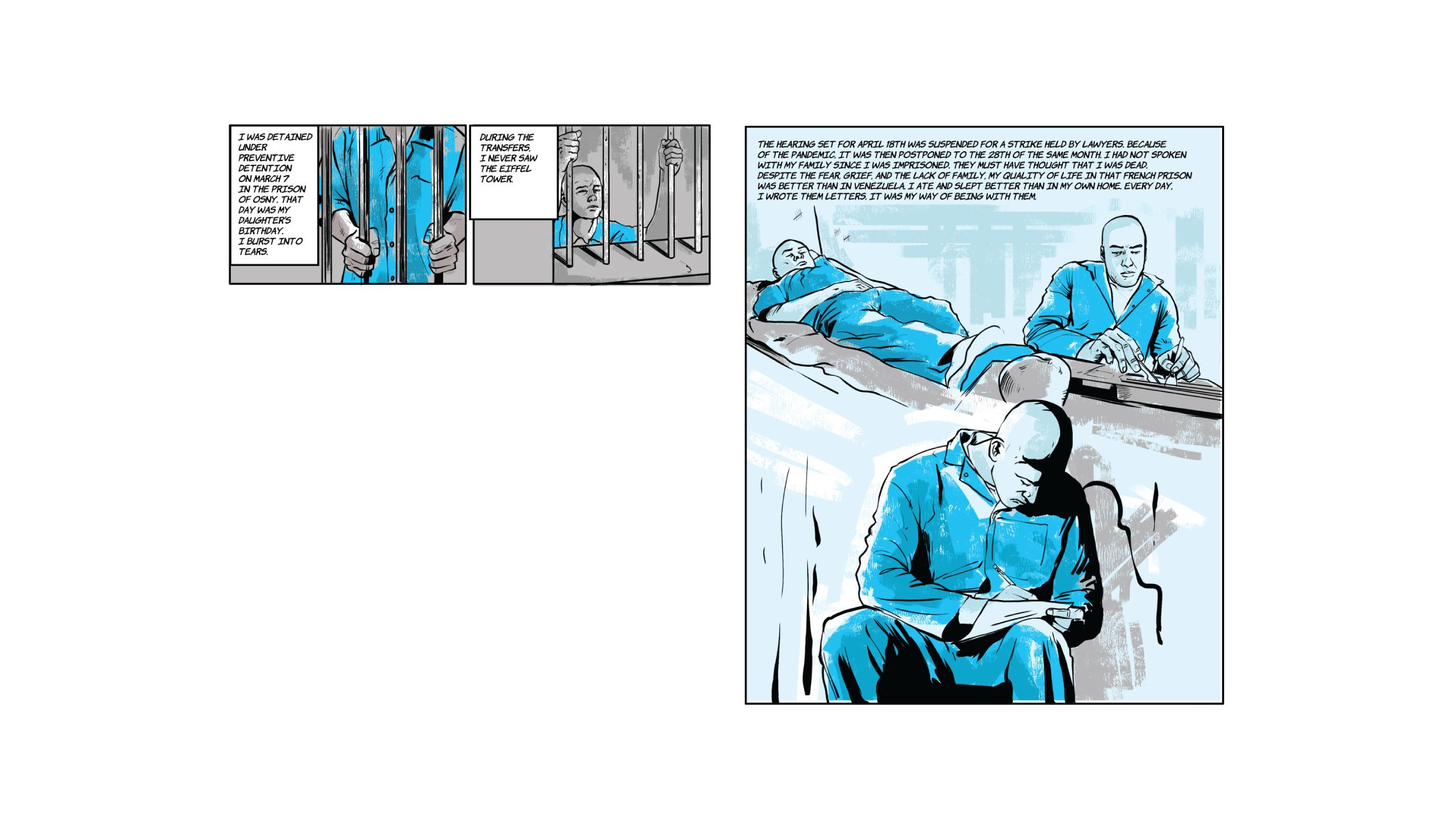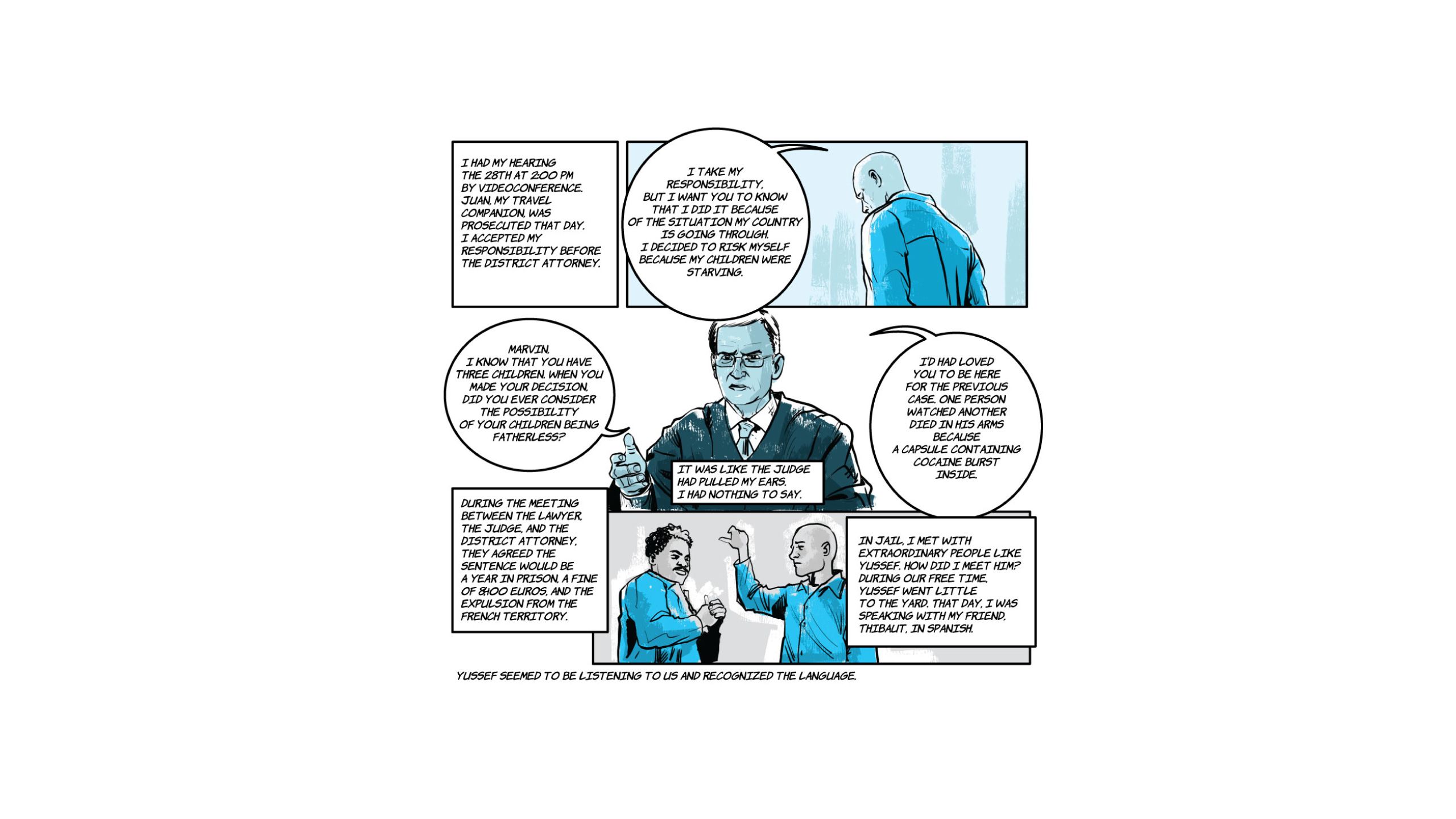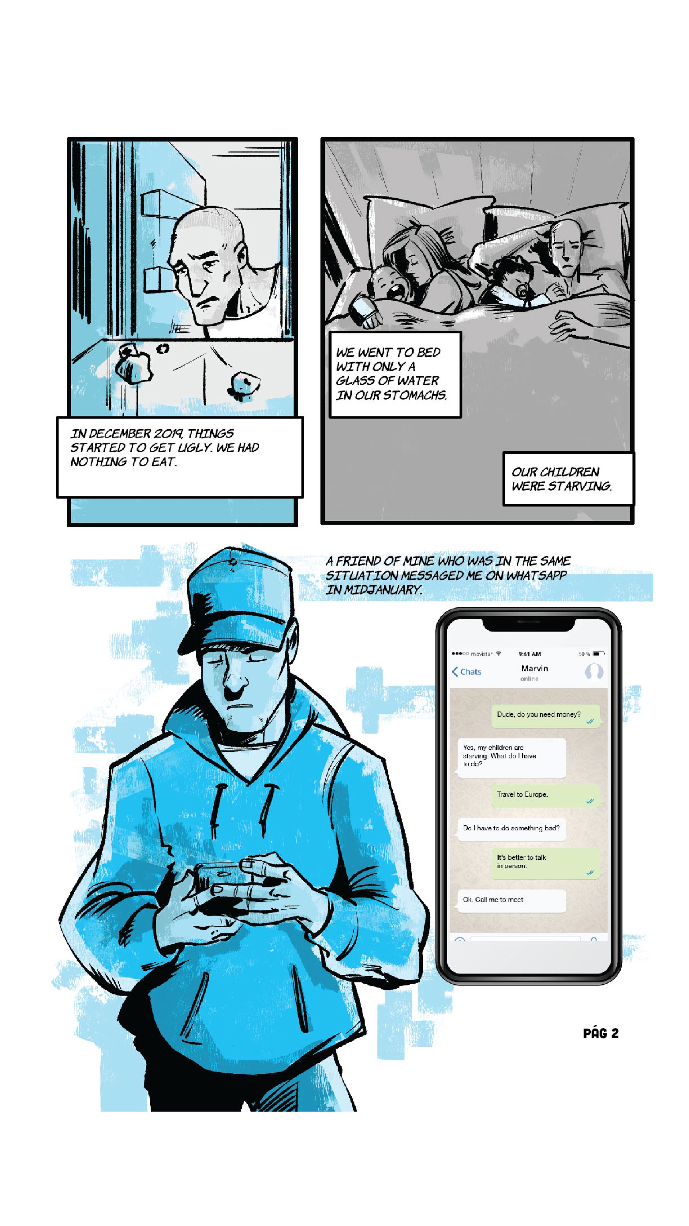“Food, for food I am here." The phrase is from Marvin*, the lead of the following comic, a Venezuelan who in the midst of the COVID-19 pandemic wandered the streets of Paris alone, without money, without a place to sleep and without a job. It was August 2020 and he had just been released from a prison in the French capital, where he ended up earlier that year after being captured with more than a hundred finger cots of cocaine.