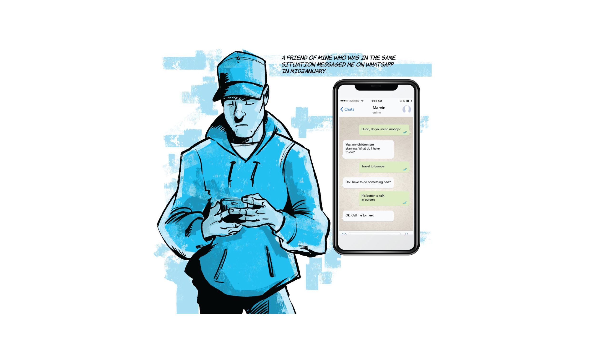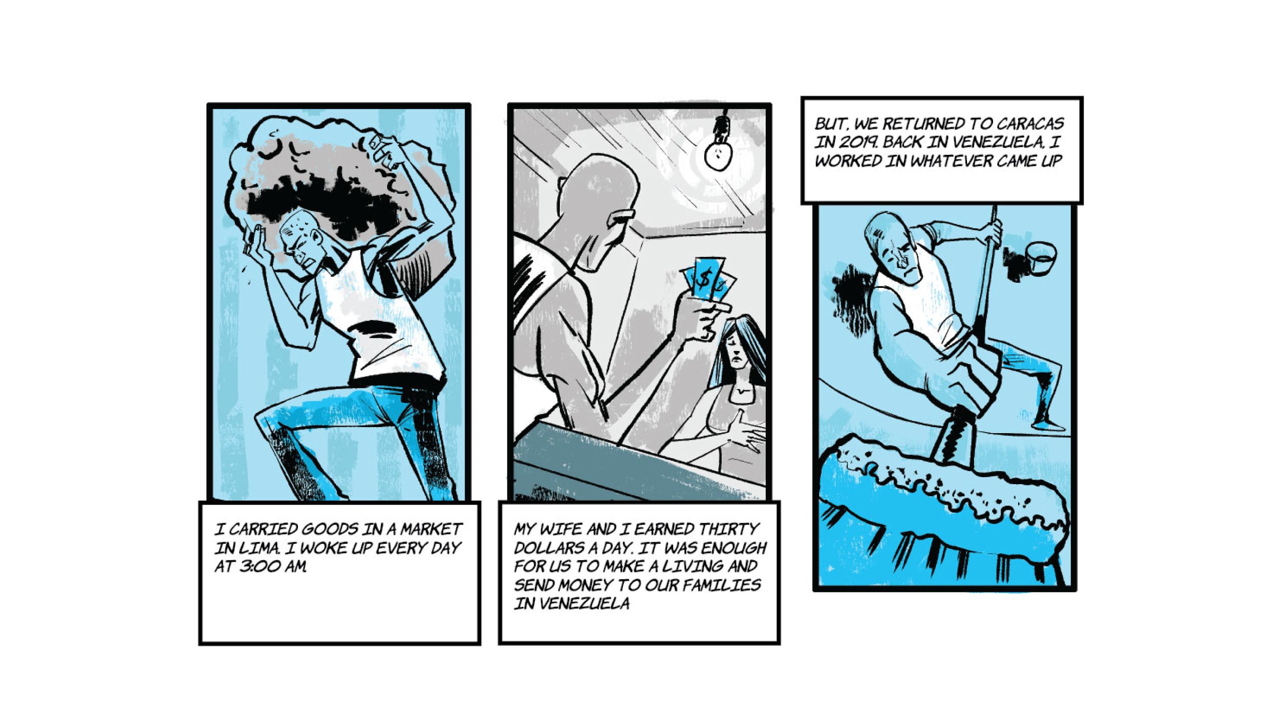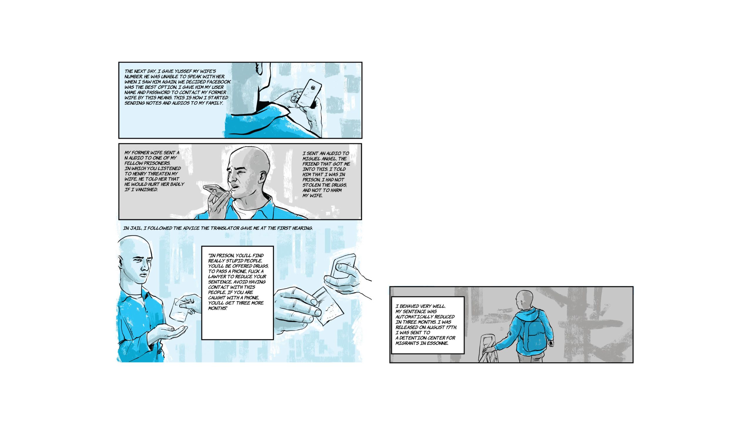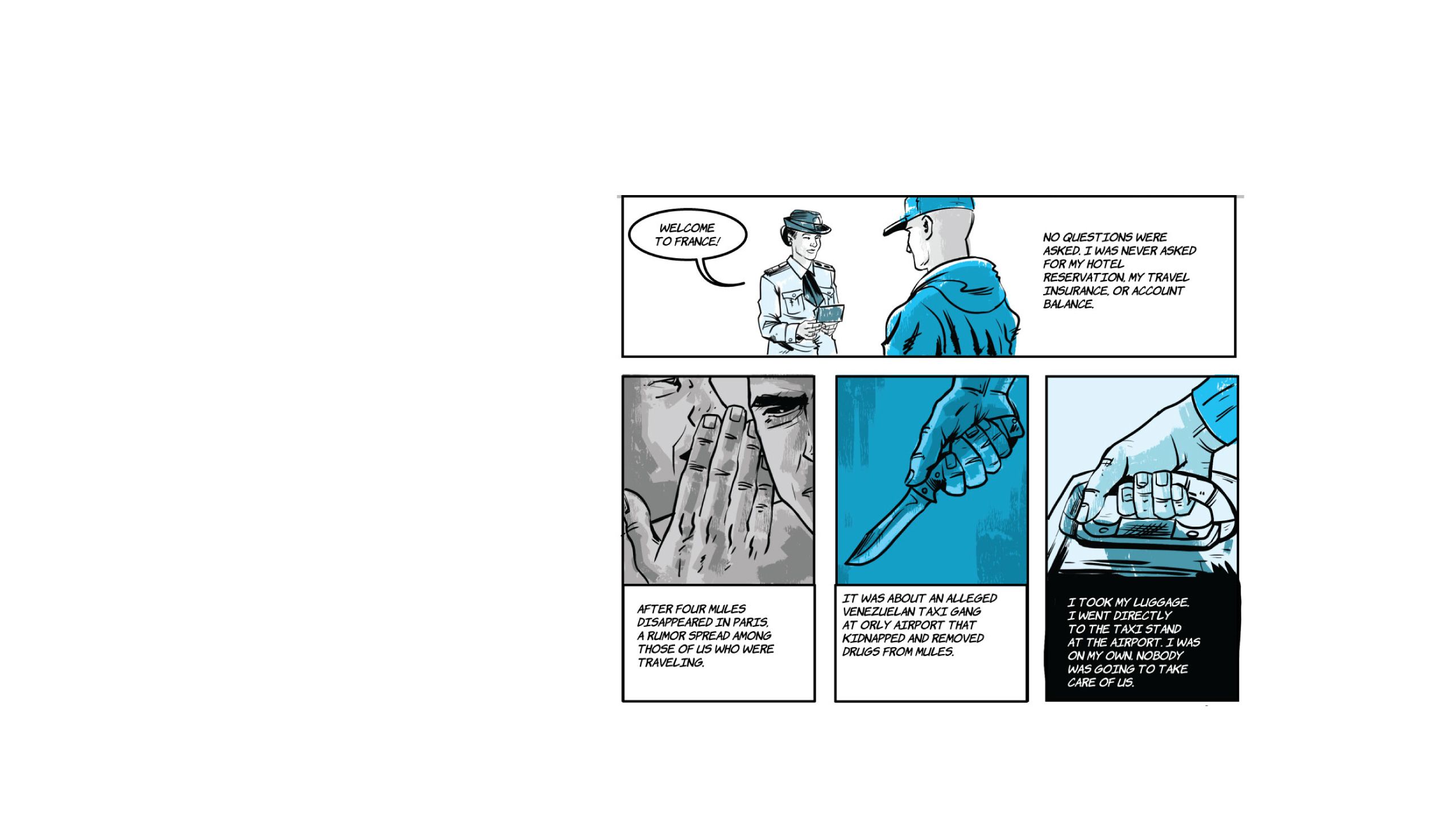 “Food, for food I am here." The phrase is from Marvin*, the lead of the following comic, a Venezuelan who in the midst of the COVID-19 pandemic wandered the streets of Paris alone, without money, without a place to sleep and without a job. It was August 2020 and he had just been released from a prison in the French capital, where he ended up earlier that year after being captured with more than a hundred finger cots of cocaine.