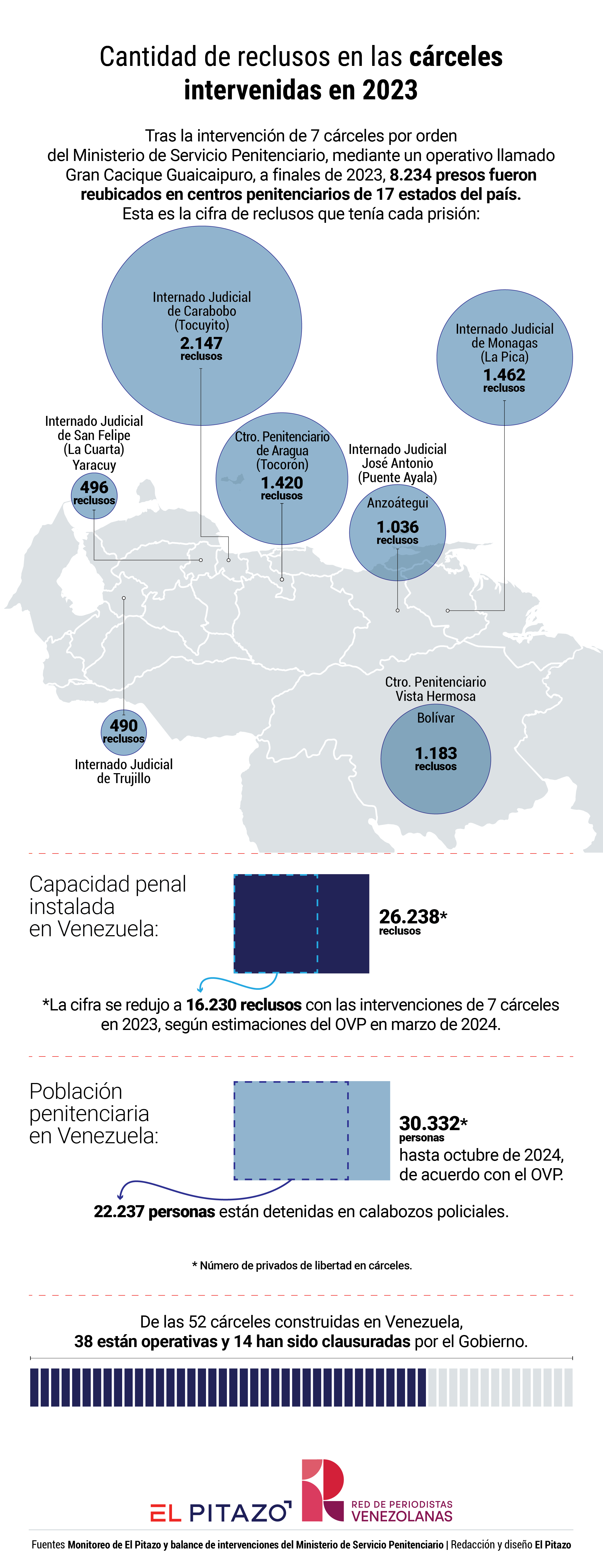 A finales de 2023, el gobierno de Venezuela intervino siete cárceles que estaban controladas por pranes, como se conoce a los jefes del crimen organizado, mediante un operativo denominado Gran Cacique Guaicaipuro. Entonces enviaron otras prisiones a 8.234 reclusos procedentes de las cárceles de Tocuyito (Carabobo), Tocorón (Aragua), La Cuarta (Yaracuy), Puente Ayala (Anzoátegui), La Pica (Monagas), Vista Hermosa (Bolívar) y el Internado Judicial de Trujillo (Trujillo).